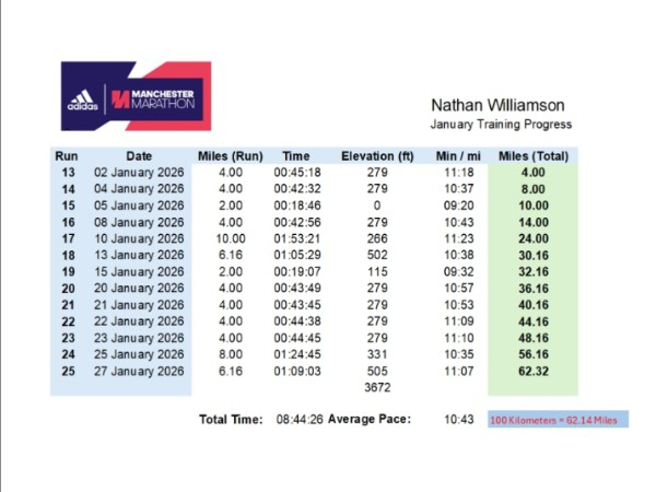 100 Kilometers in January complete
